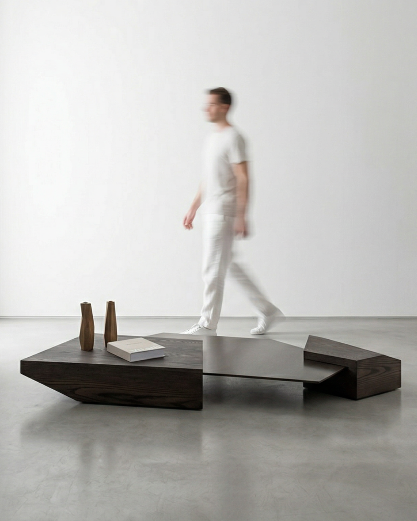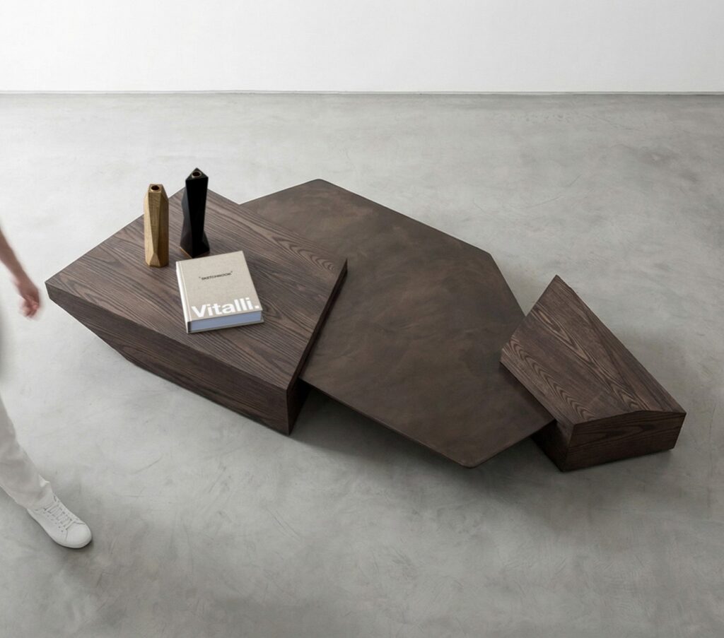 A striking interplay between form and void – the RIFT Coffee Table echoes the seismic forces of geological fractures and the tension between monolithic apertures.